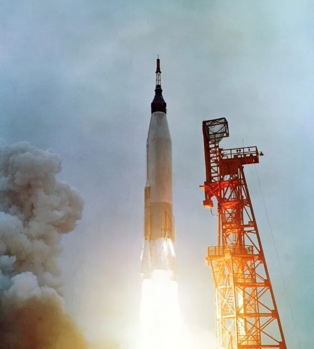 Scott Carpenter’s Aurora 7 capsule on Mercury Atlas 7 lifts off from Pad 14, Cape Canaveral, Florida, May 24th, 1962. © NASA